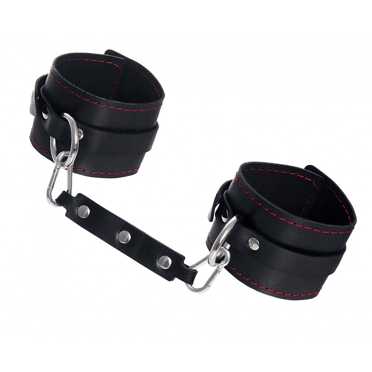 Эти однослойные кожаные оковы с контрастной строчкой красного цвета могут стать стильным аксессуаром, а могут послужить вашим целям по своему прямому назначению. Частичное обездвиживание и невозможность двигать руками или ногами дают вам полную власть над партнером – взрослые игры для взрослых. Наличие двух колец и карабинов, соединенных между собой кожаным ремешком, позволяет использовать изделие как раздельно – аксессуар-манжеты, так и как оковы для фиксации. К широким металлическим кольцам также можно присоединить и другие аксессуары при помощи карабинов. Благодаря универсальному размеру оковы могут использоваться и мужчинами, и женщинами. Размер легко регулируется с помощью металлических пряжек, органично вписывающихся в общий стиль. Длина манжет - 25 см, ширина - 6,5 см. Длина сцепки - 17 см.