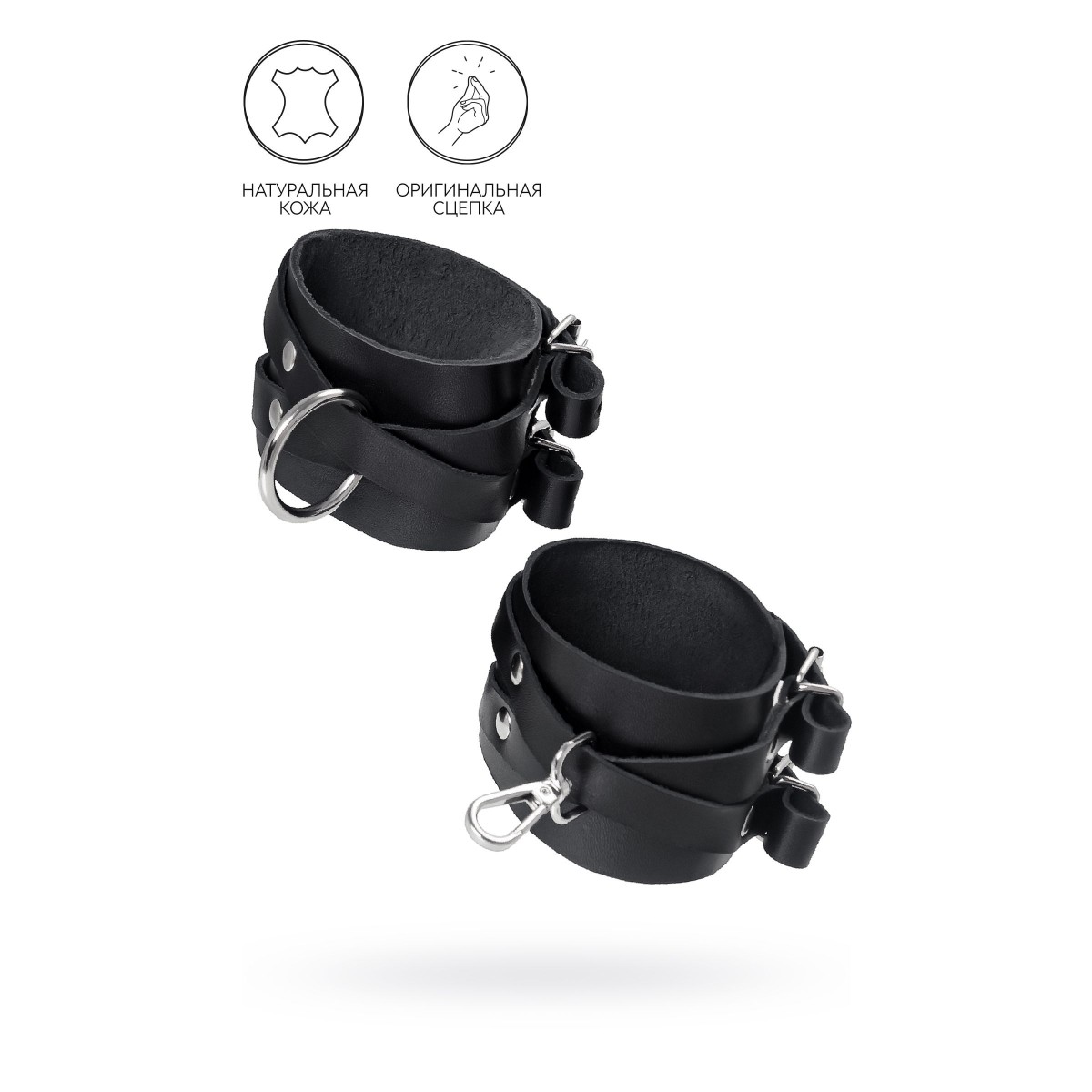 Черные оковы с оригинальным дизайном от российского производителя Pecado созданы для Вашего наслаждения. Они отлично смотрятся как на женских, так и на мужских ногах. Каждая деталь оков сделана с огромным трепетом и вручную. Аксессуар приятно держать в руках, а также использовать по назначению. Натуральная, экологичная кожа с терпкий ароматом обладает хорошей износостойкостью. Материал плотный, прекрасно держит форму и не мнется. Благодаря хорошей ширине манжет и металлической застежке, оковы отлично фиксируют ноги. Вся фурнитура высокого качества. На ремешках имеется хороший запас регулировки, что позволяет подобрать необходимый размер. Обе манжеты обладают разным дизайном. Главное отличие от других изделий в металлических деталях: на одном наручнике большое кольцо, на другом – карабин. При желании атрибут возможно дополнить другими аксессуарами. Длина манжет – 25,5 см, ширина – 6 см. Длина сцепки – 7,5 см.