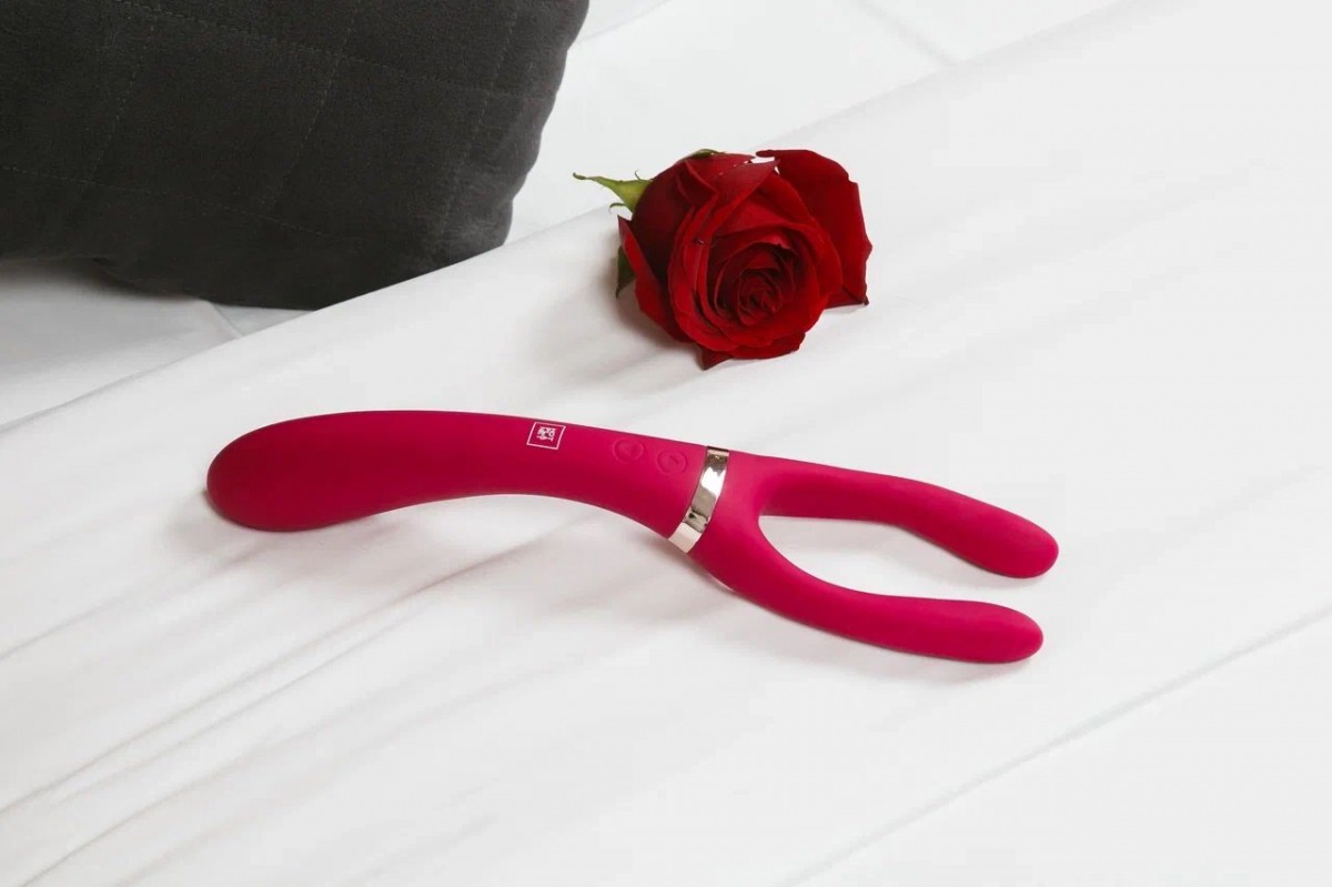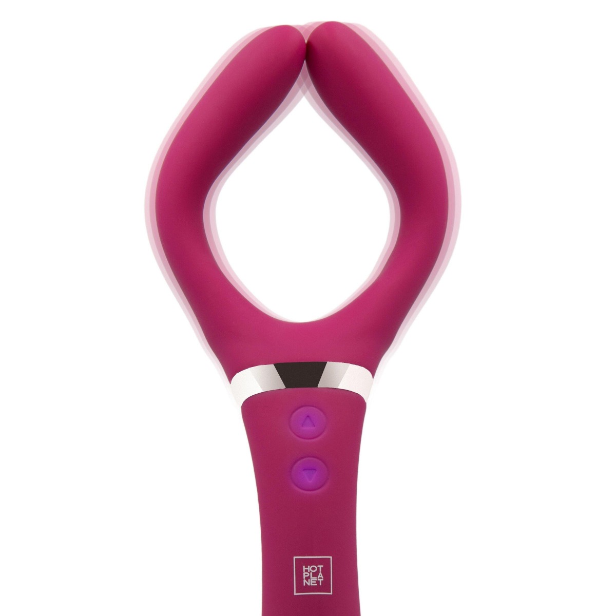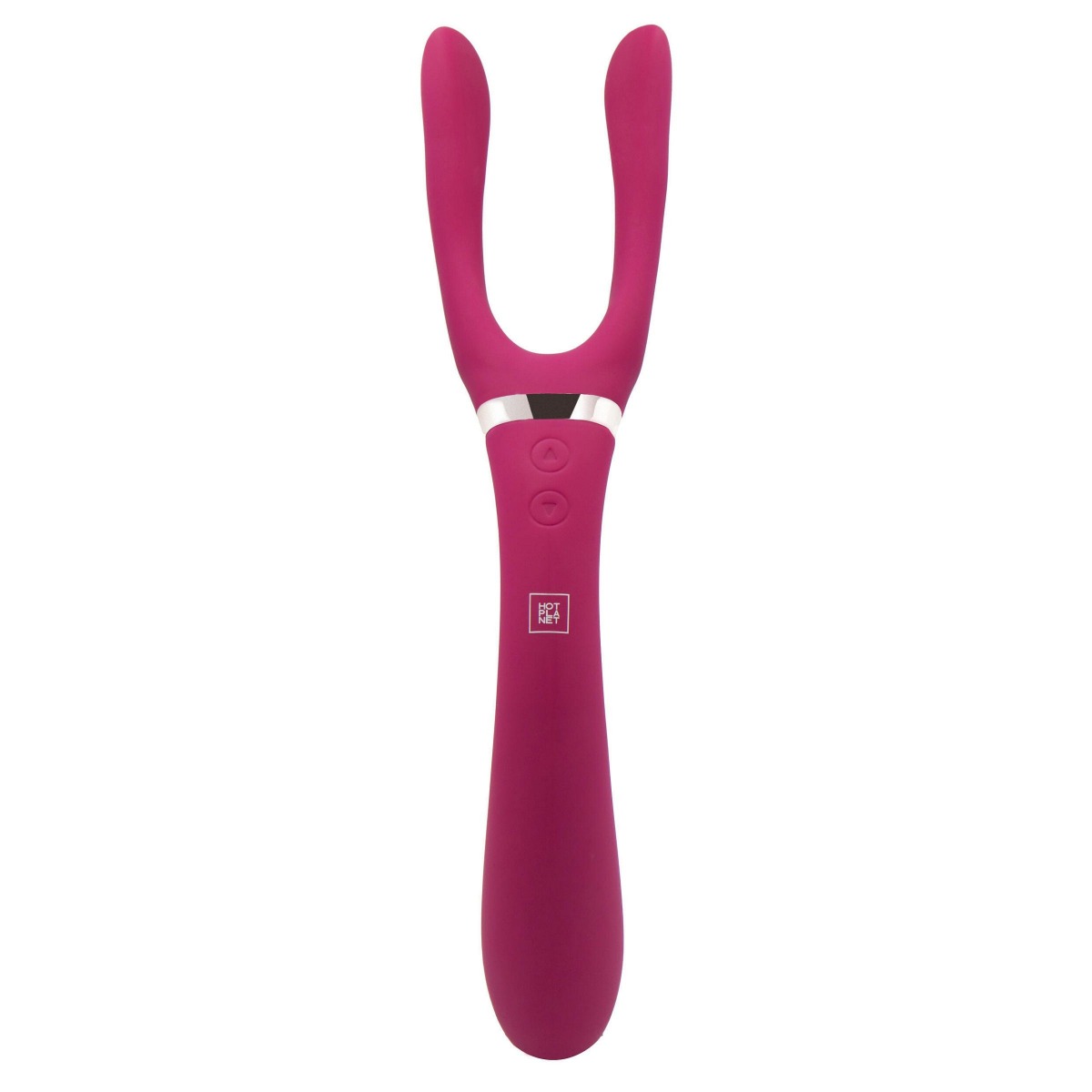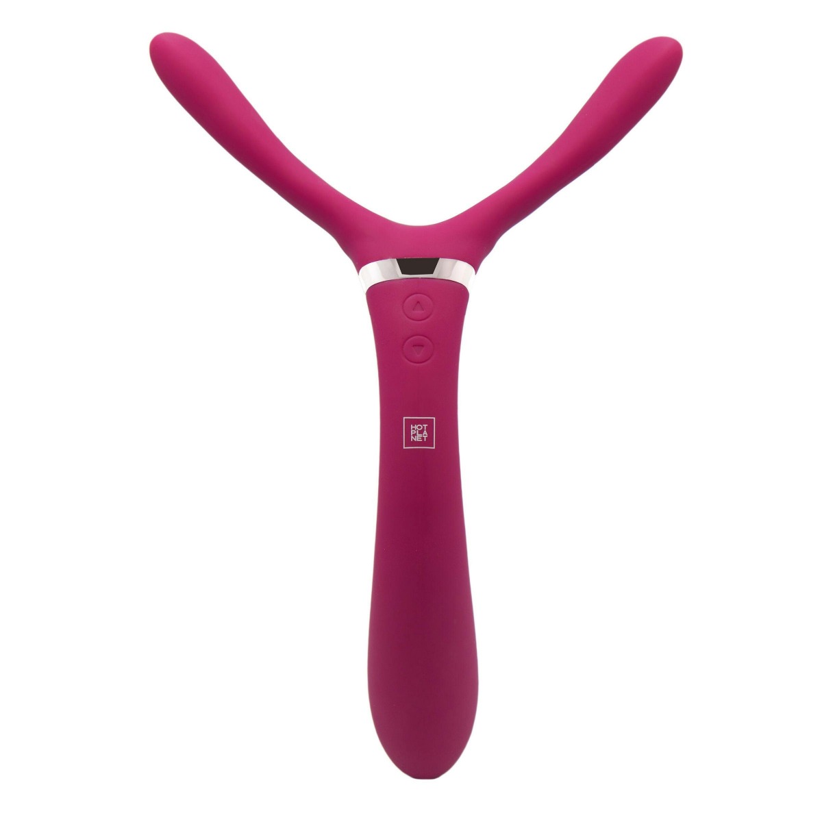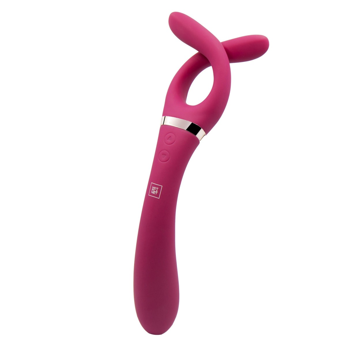 Hot Planet Aster — многофункциональный вибратор для пар. Возможности его применения ограничиваются лишь вашей фантазией! Игрушку можно использовать как вагинально, стимулируя точку G, так и анально. Два коротких отростка сгибаются в любых направлениях и ими можно стимулировать клитор, мочки ушей, соски, половой член, их также можно помещать вагинально, стимулировать ими промежность и другие чувствительные эрогенные зоны. Три моторчика в каждом отростке управляются отдельно друг от друга, благодаря чему вы можете настроить вибратор так, как вам только захочется. Для включения/выключения коротких кончиков (2 мотора) удерживайте верхнюю кнопку в течение 3 секунд. Короткое нажатие этой же кнопки последовательно переключает 9 режимов вибрации коротких кончиков стимулятора. Те же действия со второй кнопкой включают/выключают и меняют 9 режимов вибрации 3го мотора в длинном отростке.