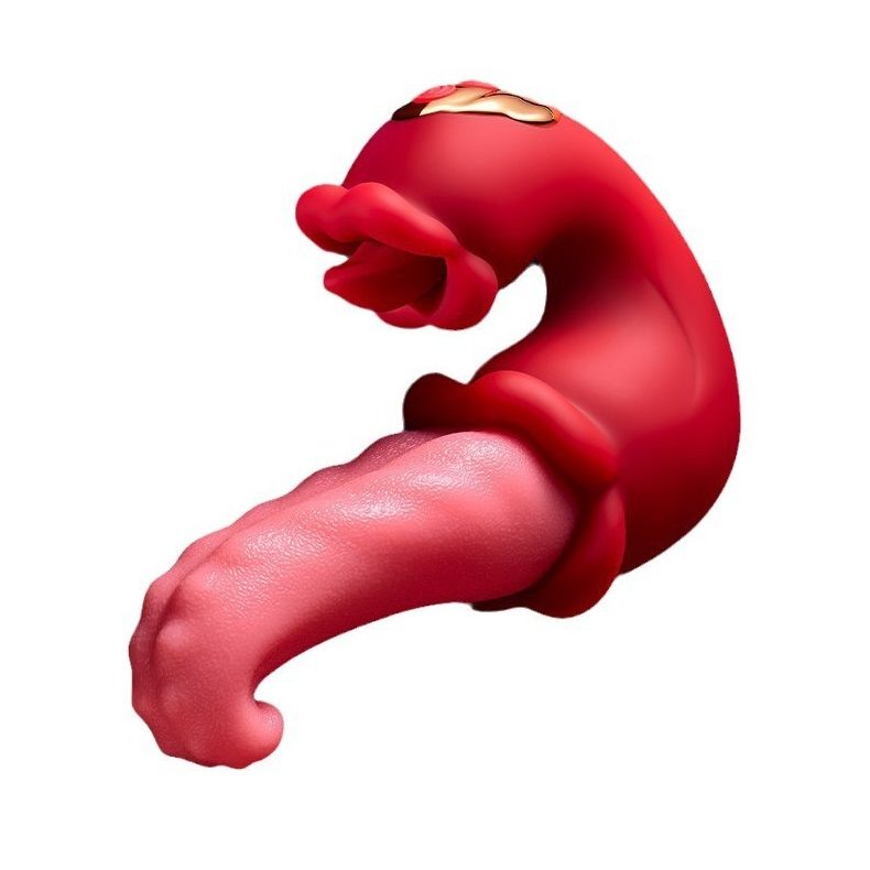 Красный вибратор-язык с вакуумной стимуляцией клитора. Обеспечивает одновременную стимуляцию влагалища и клитора. Имеет 10 режимов вибрации.