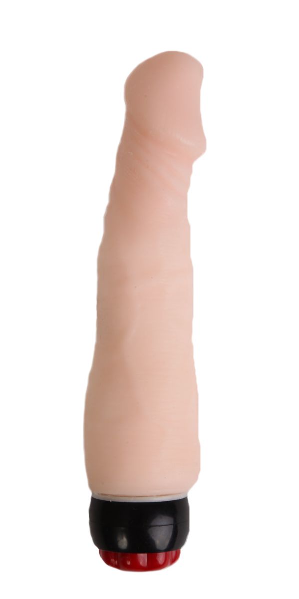 Вибромассажёр телесного цвета. Имеет форму члена с ярко выраженной головкой. Приятный, выполненный из материала ПВХ. Виброэлемент расположен по всей длине изделия. Степень вибрации регулируется при помощи кнопки, расположенной в основании. Рабочая длина - 18 см.